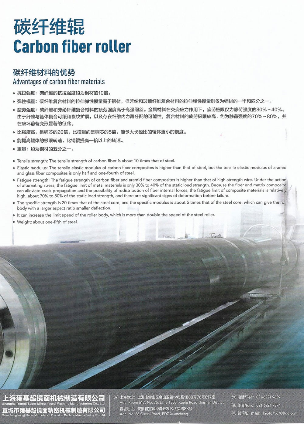 ●比強(qiáng)度高,是鋼芯的20倍,比模量約是鋼芯的5倍,能予大長徑比的輥體更小的撓度。